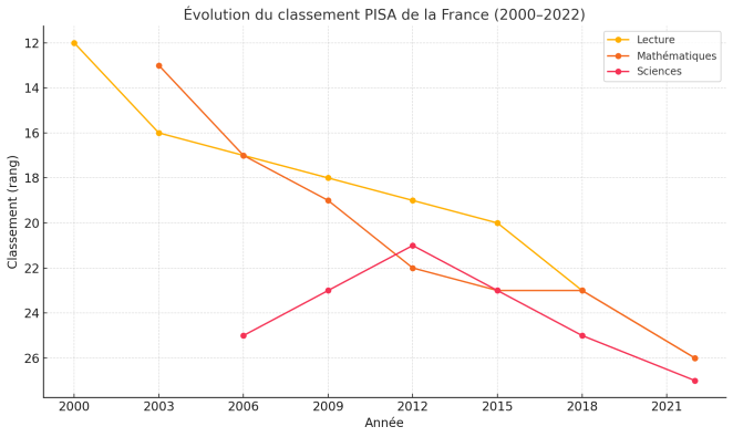 C’est un effondrement réel, objectivable et humiliant. Et il porte un nom : France, système éducatif, 2000–2025.