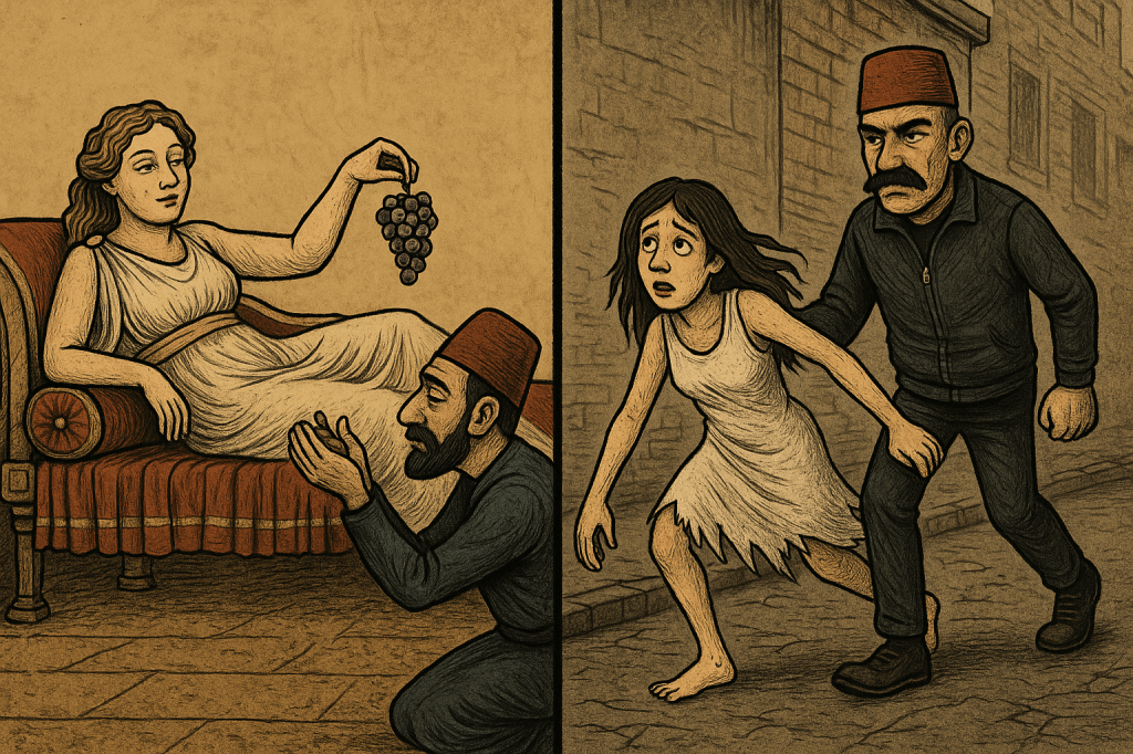 Et pour la blague, elle est descendante de famille de patriciens romain. C’est à dire que quand les légionnaires romain, avec leurs armures plaqués or, allaient péter la gueule aux tribus oghouzes ; les rescapés finissaient chez ces mêmes patriciens pour vider les latrines ou nettoyer les marbres.